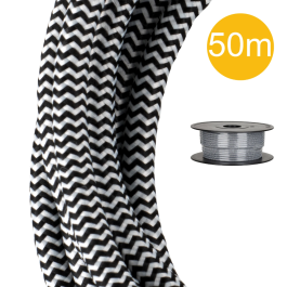 Decoratieve 2-aderige textiel strijkijzersnoer. Wordt gebruikt om armaturen en lampen aan te bevestigen. Zowel voor moderne als retro en vintage interieurs. Wordt geleverd op rol van 50 meter.