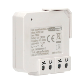 Deze mini inbouw zender is aan te sluiten op een bestaande enkele/dubbele wandschakelaar, waarmee reeds een lamp geschakeld wordt. (LET OP: De wandschakelaar moet al een lamp kunnen schakelen!). Te koppelen met diverse KlikAanKlikUit ontvangers.