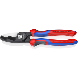 Kabelschaar om koperen en Aluminium kabels te knippen. Niet geschikt voor staaldraad en hardgetrokken koperdraad. Geharde en nauwkeurig geslepen snijkanten. Knipt keurig glad af zonder te vervormen. Door te knippen met voor- en nasnede (1ste en 2de snede) kunnen ook kabels tot 20 mm met één hand worden geknipt. Geringe krachtinspanning door gunstige overbrengingsverhoudingen en speciale snijgeometrie. Klembeveiliging voorkomt verwondingen. Verstelbaar schroefscharnier. - Snijdwaarde Cu-kabel, meerdradig: 70mm² - Snijdwaarde Cu-kabel, meerdradig: Ø 20mm - AWG: 2 / 0